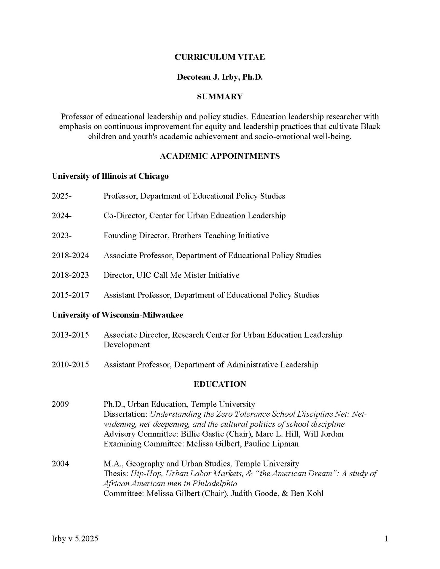Decoteau Irby - Short Bio 2025